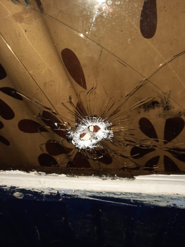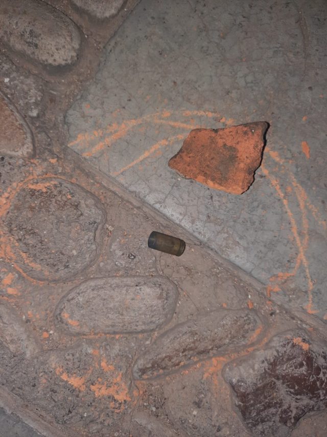 Los uniformados acordonaron la zona ya que en el suelo localizaron dos casquillos percutidos calibre .380, además de que detectaron dos impactos por proyectiles de arma de fuego en la ventana principal de la puerta del domicilio de Miguel Ángel.