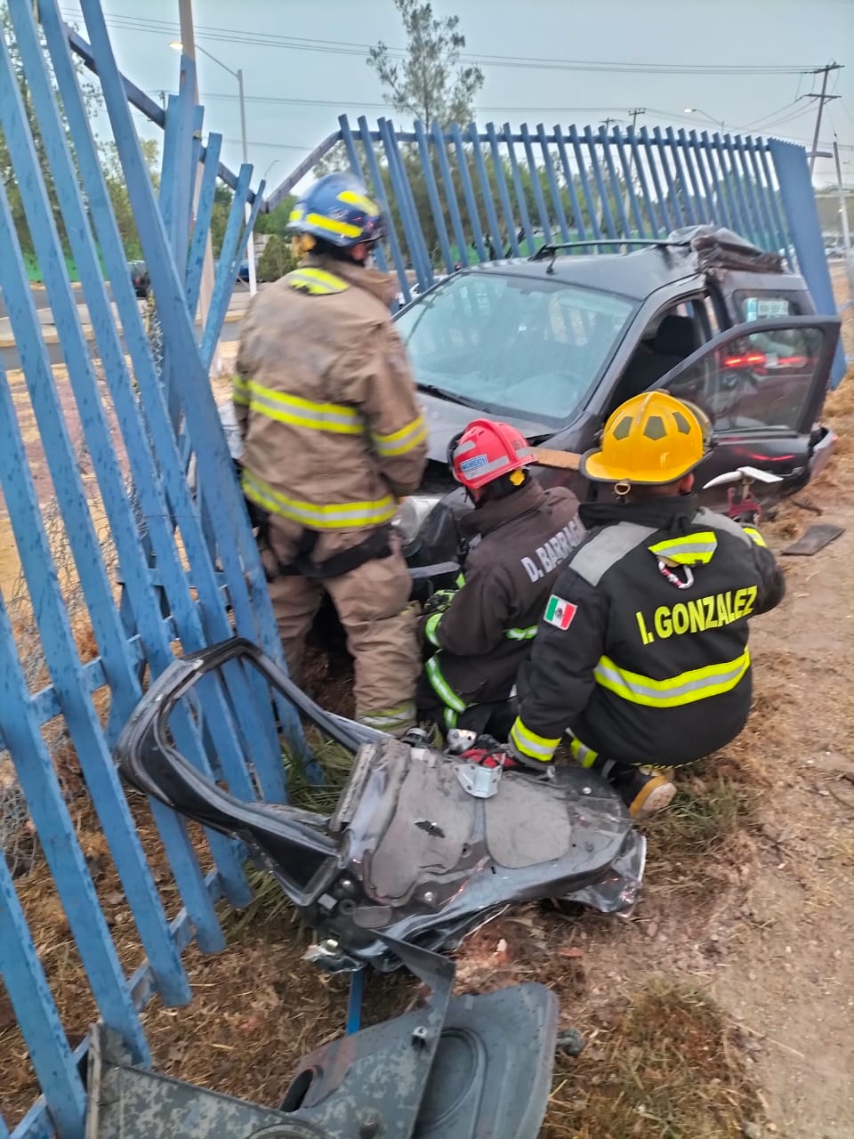 Tras ir a exceso de velocidad una familia que viajaba en una camioneta se impactó contra el barandal perimetral de la Unidad Deportiva de la Universidad Autónoma de Aguascalientes, por lo que una mujer y dos menores de edad quedaron atrapados entre los fierros retorcidos de la camioneta , para luego de ser liberados fueron llevado a un hospital.