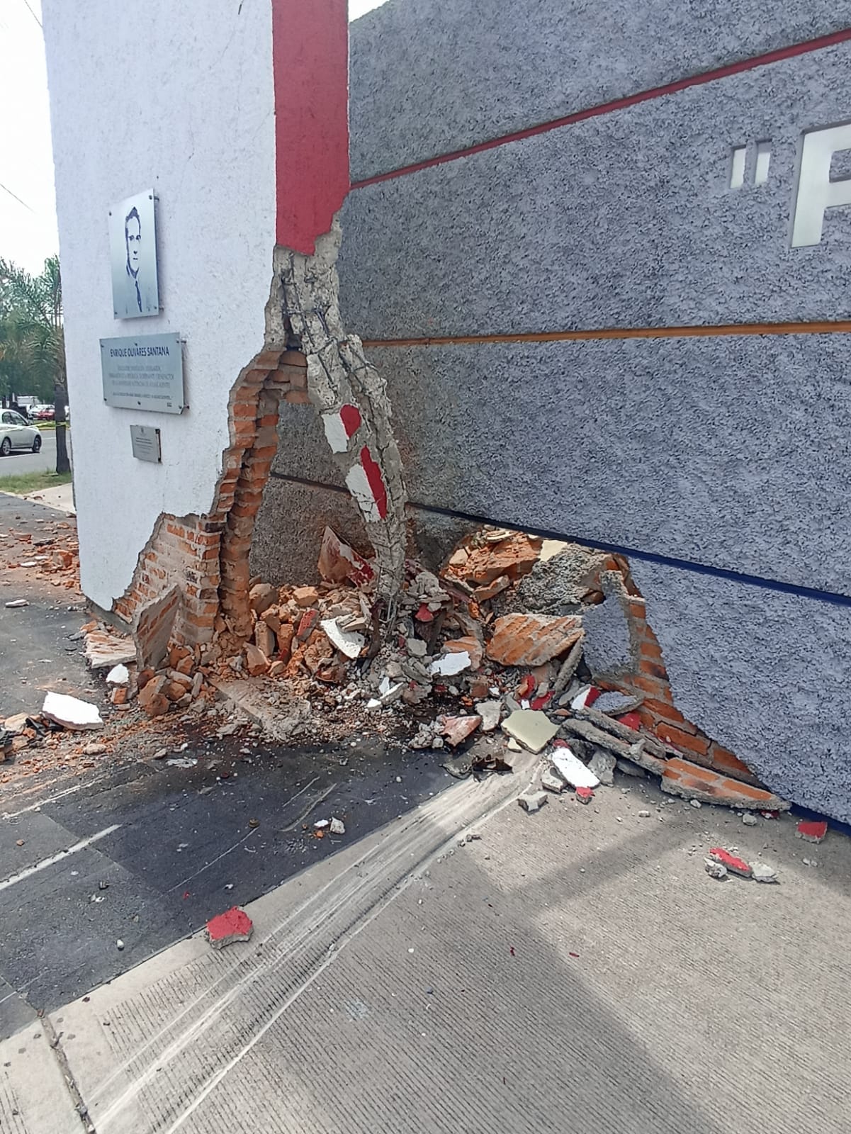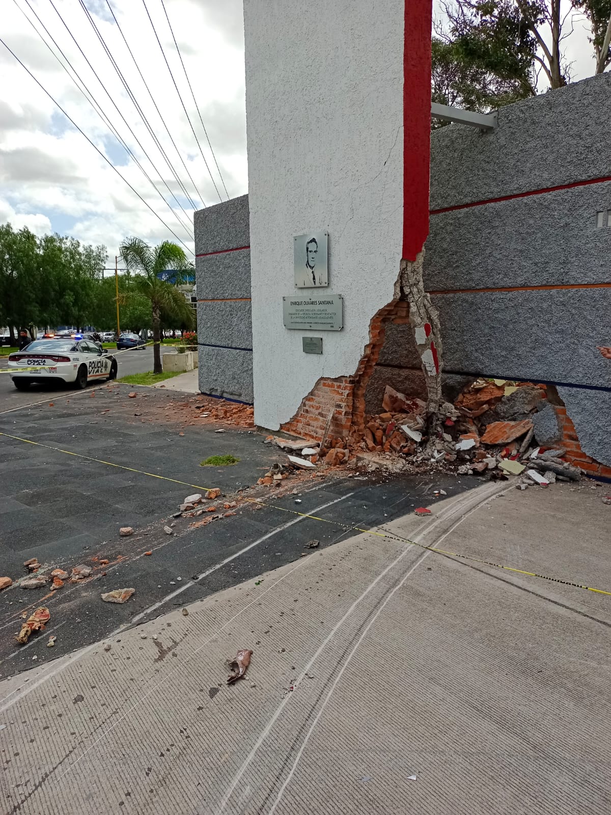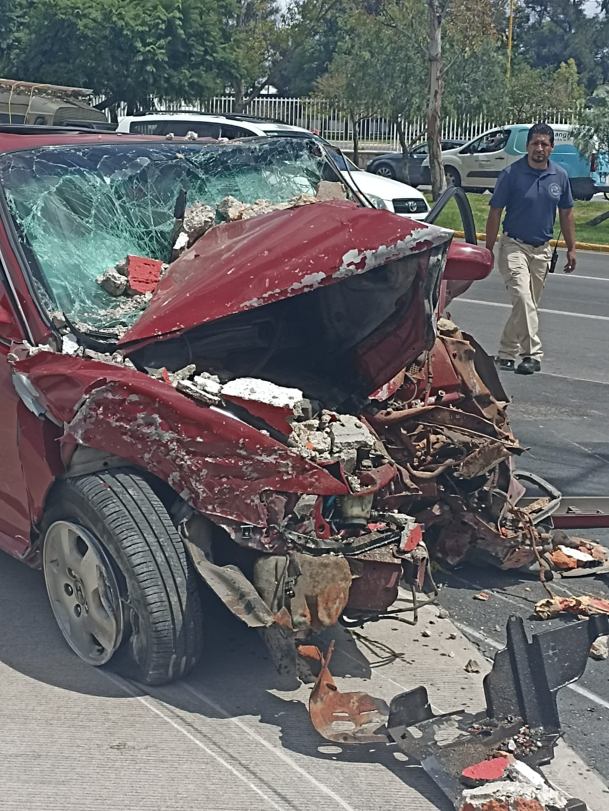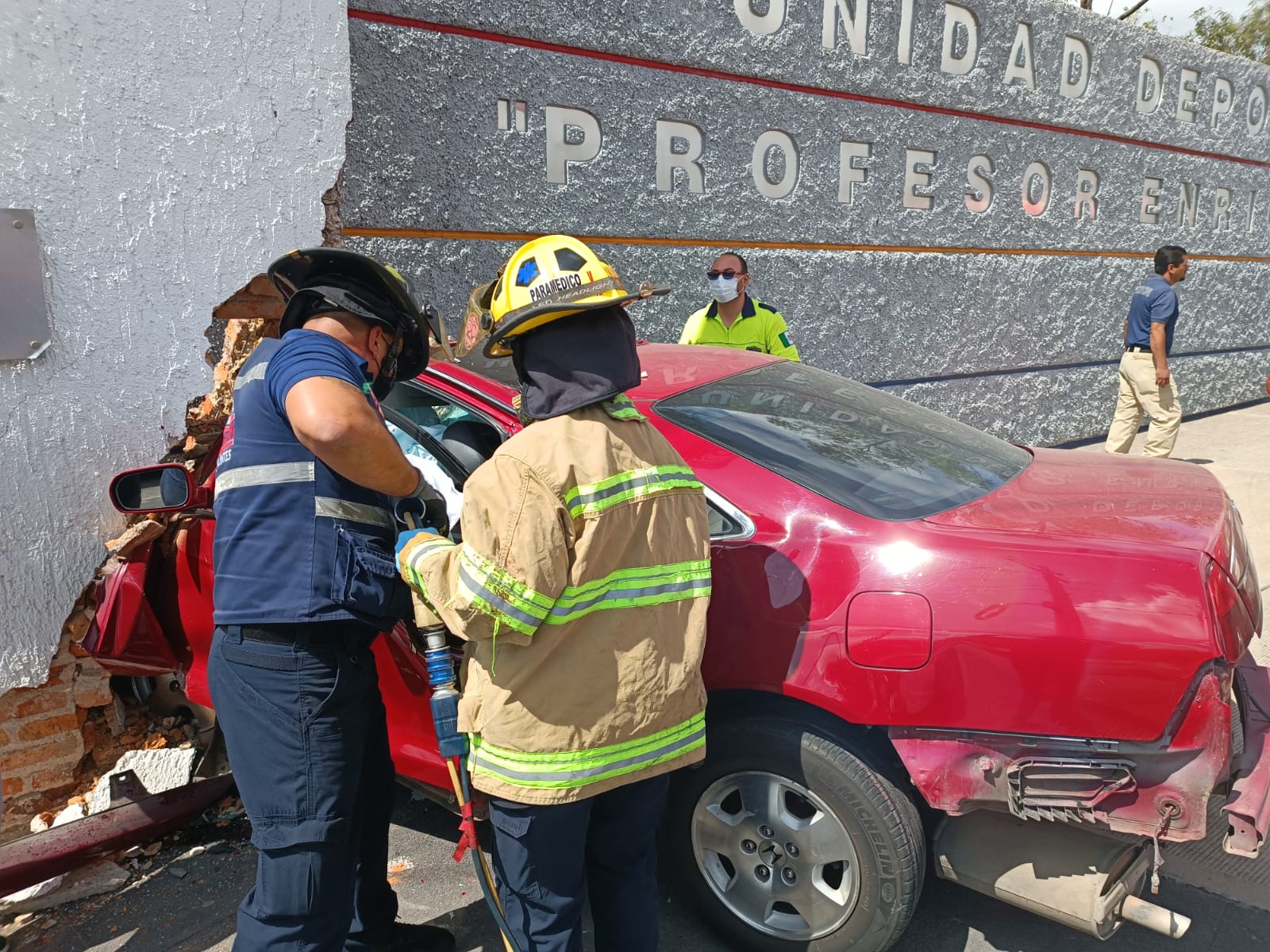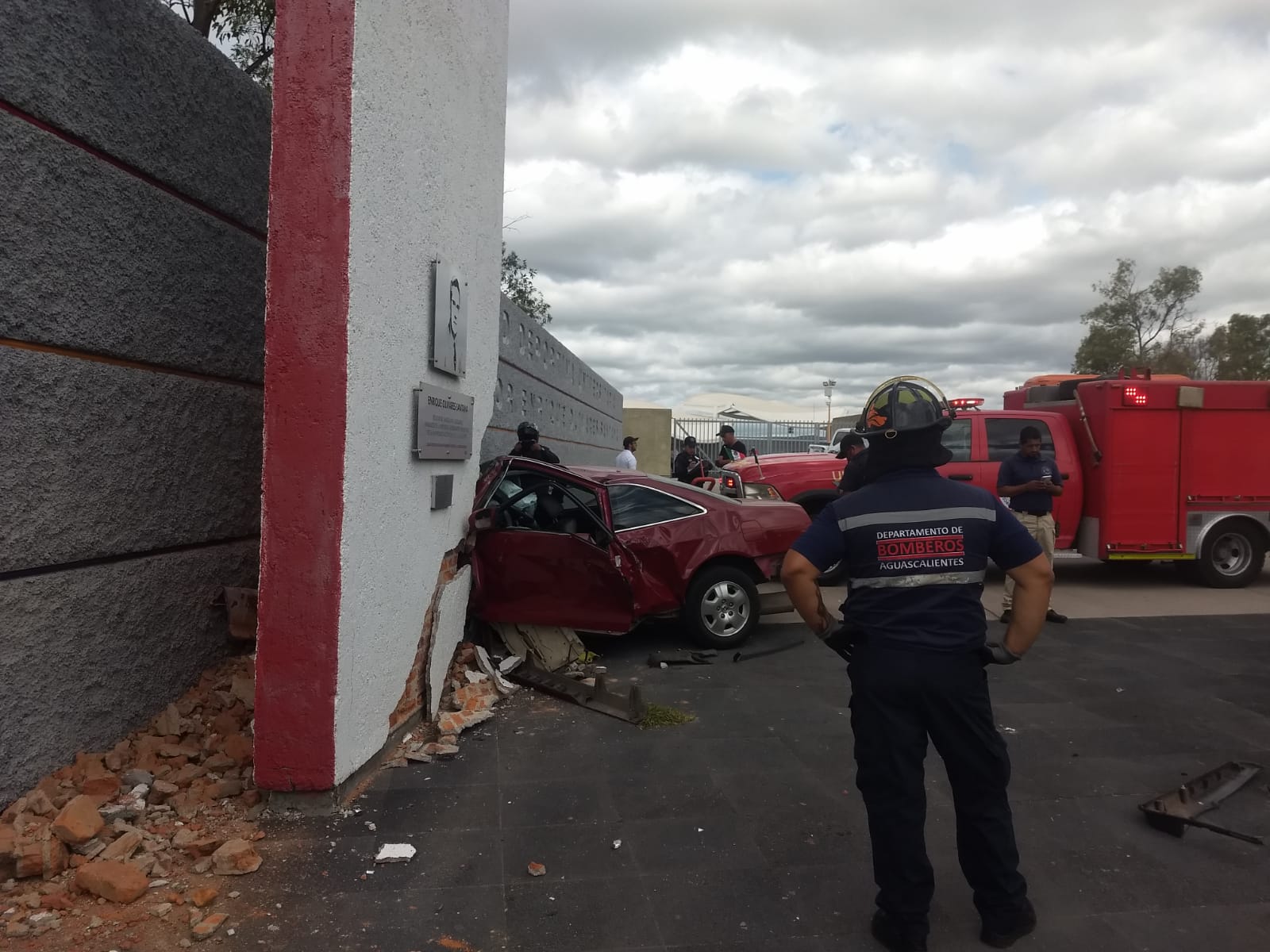 El automotor se proyectó a la derecha y se subió a la banqueta en la explanada de la unidad deportiva, estrellándose de frente contra el muro de concreto.