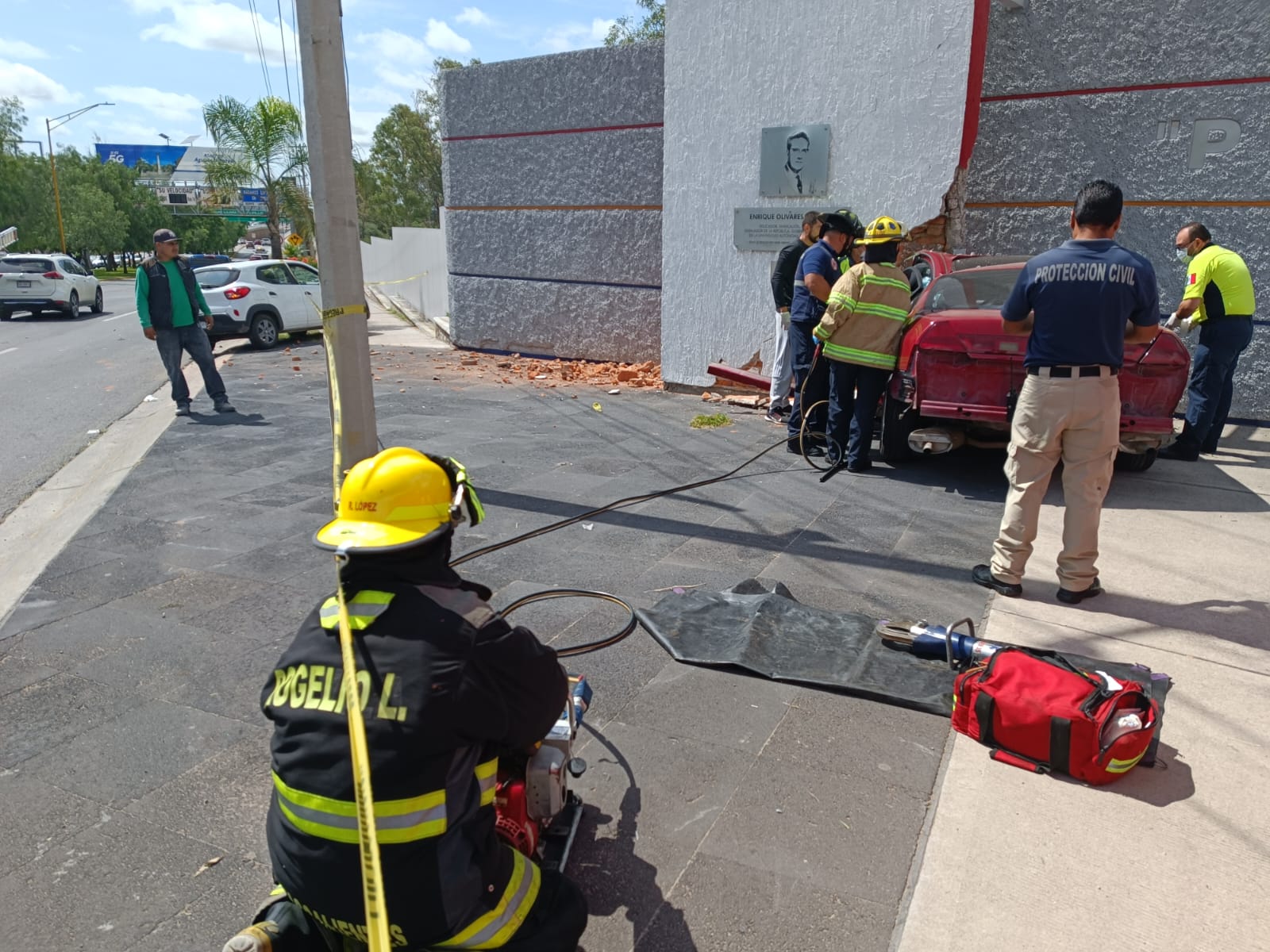 Elementos de la Coordinación Municipal de Protección Civil y del Departamento de Bomberos Municipales se presentaron en el lugar y realizaron las maniobras necesarias para rescatarlo con apoyo del equipo hidráulico conocido como “las quijadas de la vida”.