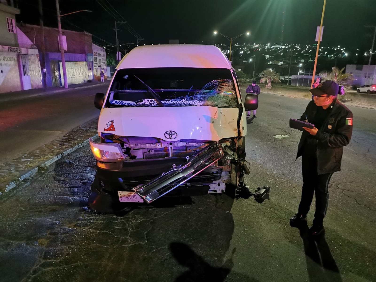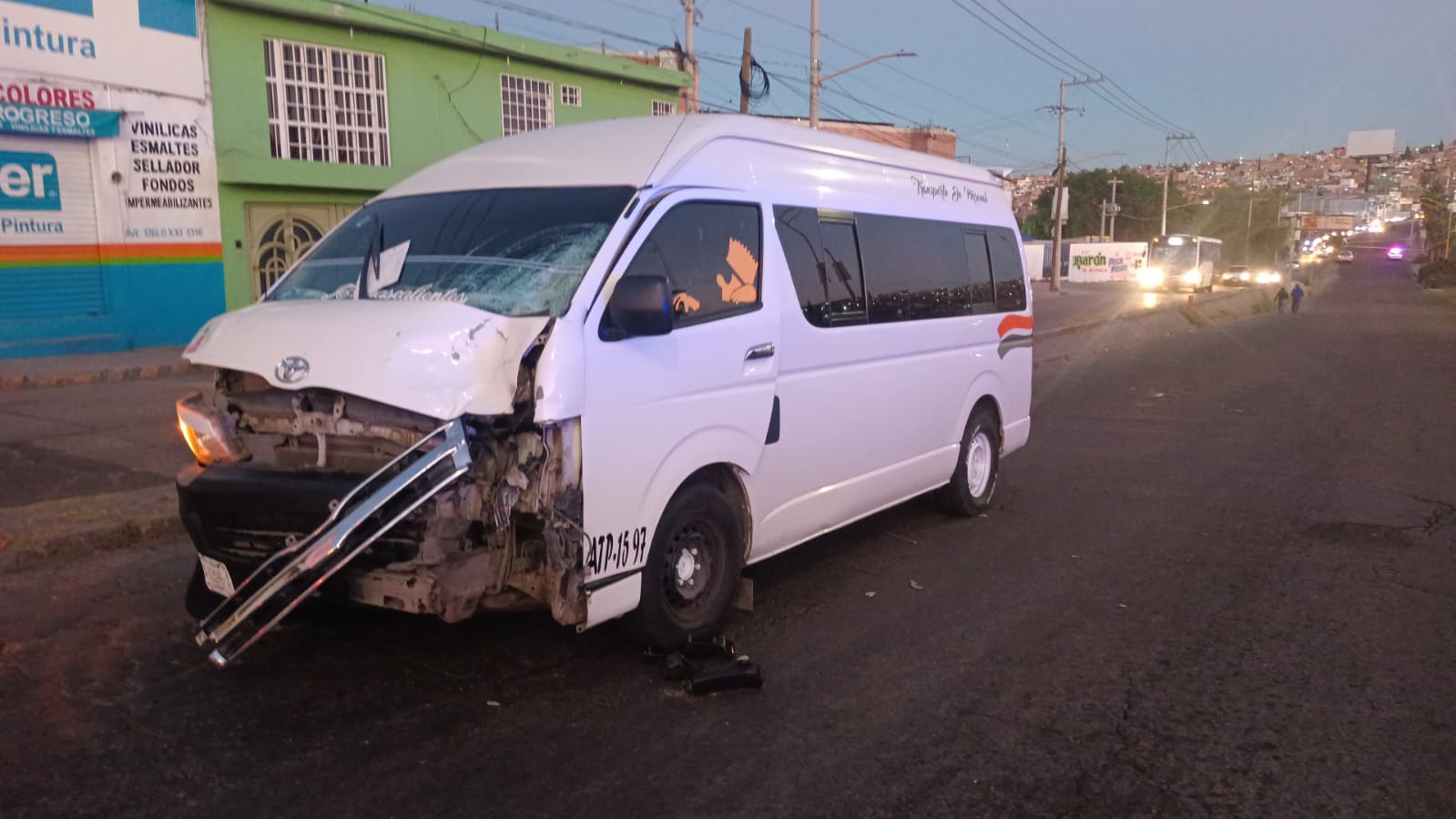 La combi terminó con daños en la parte frontal y el parabrisas estrellado del lado izquierdo.