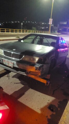 Fue así que los elementos de la Policía de Vialidad se movilizaron al punto referido y ahí detectaron al ebrio conductor de un coche Nissan en color verde, el cual se había impactado con la guarnición de la banqueta y luego contra una caja metálica que controla los semáforos de la zona.
