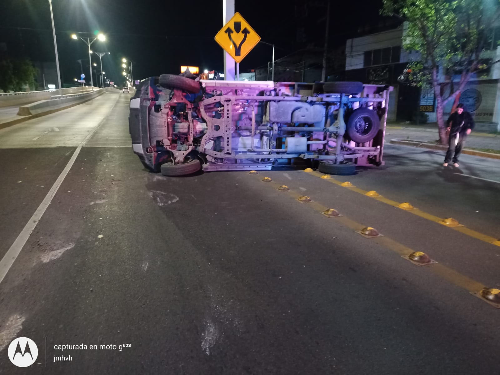 Antes de subir al puente perdió el control del volante hacia el lado izquierdo y se impactó contra la guarnición del camellón central, lo que provocó que la camioneta se volcara y quedara recostada sobre su lado derecho, atravesada sobre la avenida.