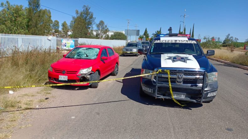 En determinado momento fue impactado fuertemente por un automóvil Volkswagen Gol, en color rojo y con placas de circulación AEA-196-C de Aguascalientes, cuyo chofer decidió escapar.
