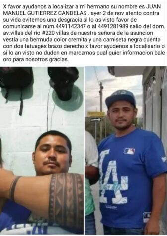 Por lo que a la brevedad elementos de la Policía Municipal de Aguascalientes y elementos de la Secretaria de Seguridad Publica del Estado se desplazaron a la zona, donde detectaron a un hombre identificado como Manuel Gutiérrez alias “El Sorcho” el cual estaba suspendido de un árbol mezquite en un predio baldío.