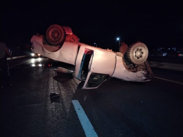 Por tal motivo uniformados de Protección Civil, paramédicos del ISSEA y de la Cruz Roja Mexicana así como integrantes de la Guardia Nacional, se presentaron en el sitio, donde detectaron una camioneta Dodge color blanco con placas de circulación del estado de Oklahoma, la cual estaba sobre su toldo con las llantas apuntando hacia arriba.