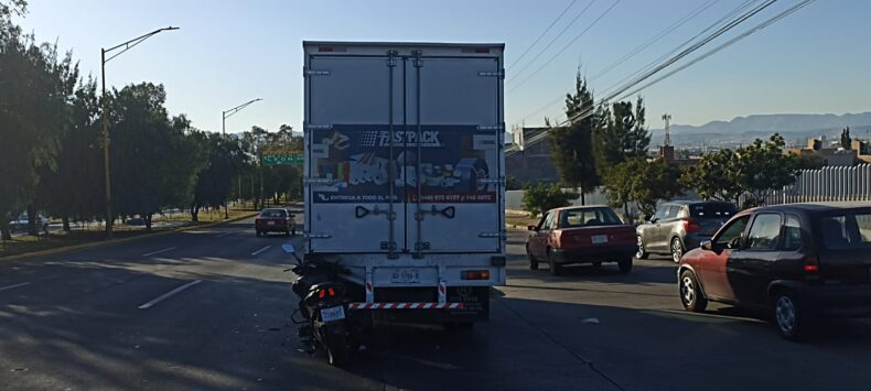 El ebrio conductor de una motocicleta se incrustó en la parte trasera de un camión, por lo que resultó con una severa fractura de una de sus extremidades, por lo que fue llevado de emergencia a recibir atención médica.