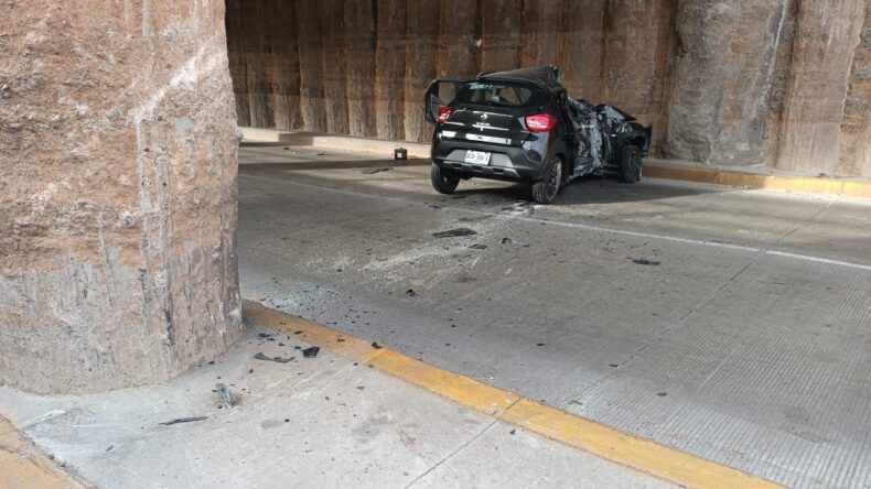 Al llegar al cruce con la calle Quezada Limón la mujer al volante identificada como Rubí Martínez, de 28 años, perdió el control y se estrelló contra la guarnición y posteriormente contra un pilar del paso a desnivel, lo que le provocó lesiones mortales a quien fue identificada como Mariel Aguado López Araiza.