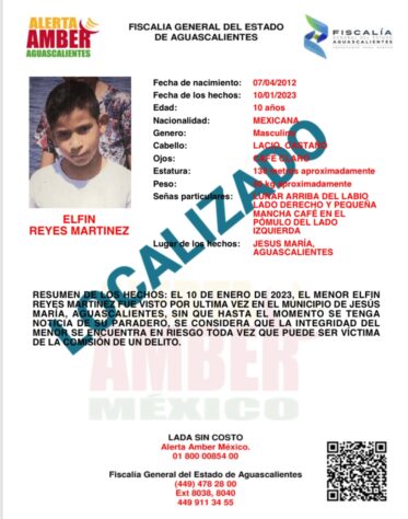 Agentes de la Policía de Investigación localizaron sano y salvo al niño Elfin Reyes Martínez, de 10 años de edad, que había sido reportado como desaparecido e incluso se había activado una Alerta Amber para su búsqueda.