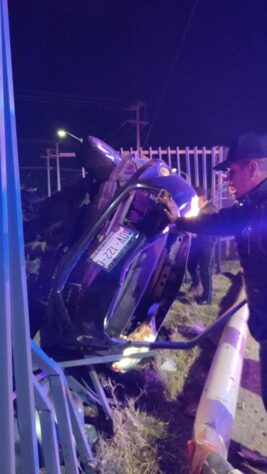 Por lo que elementos de la Policía Vial de Aguascalientes, paramédicos de ISSEA y Bomberos Municipales de Aguascalientes se desplazaron al lugar de los hechos, donde detectaron un vehículo de la marca Toyota, en color negro, el cual estaba destrozado y atorado en el barandal de protección de una extensión de la UAA.