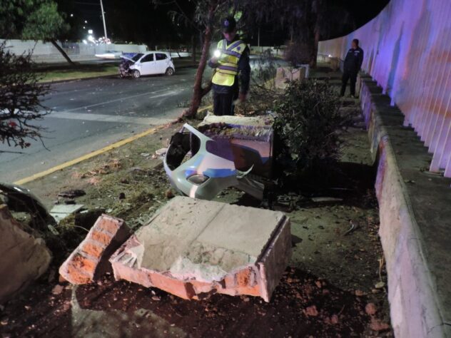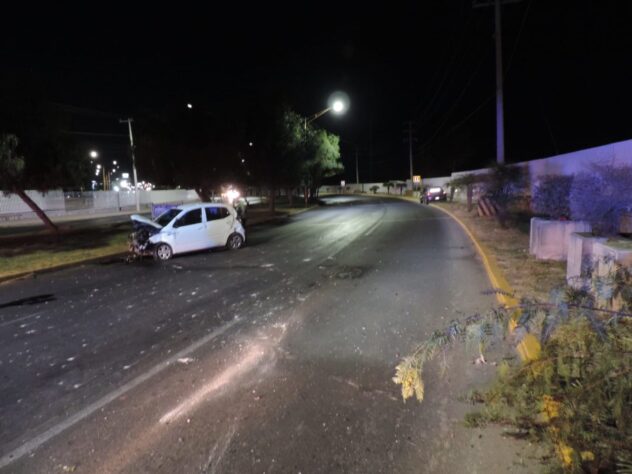 Tras lo anterior, elementos de la Policía Vial de Aguascalientes se movilizaron al lugar de los hechos, donde localizaron un automotor Hyundai i10 en color blanco, el cual se había impactado contra un macetón y un árbol, detectando asimismo a varios metros de distancia a su conductor.