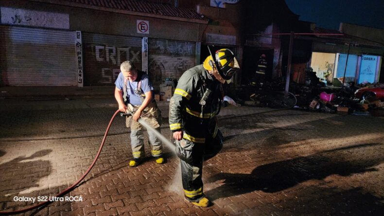 Fue así que a la brevedad comenzaron con las maniobras de extinción del fuego, el cual ocasionó daños en las paredes y la cortina metálica del local y de otros más aledaños.