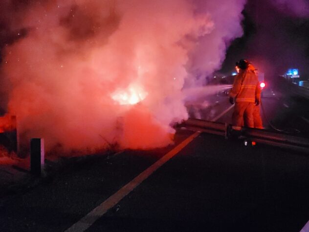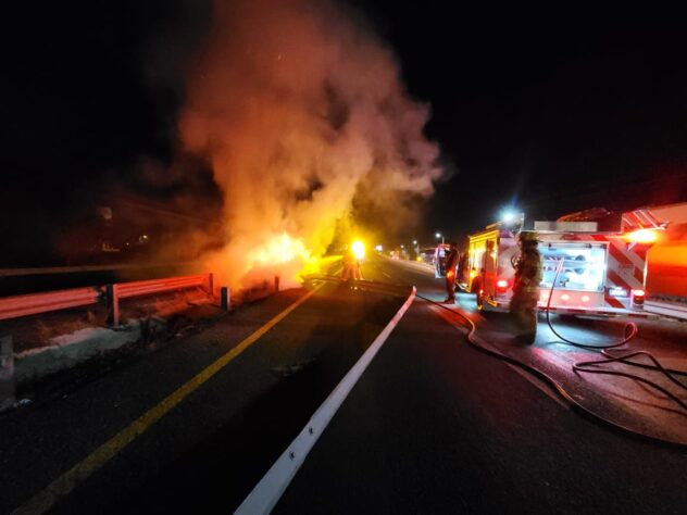 Por lo que miembros de la Coordinación Municipal de Protección Civil de Pabellón de Arteaga y de Bomberos del Estado se movilizaron al punto referido, donde localizaron una camioneta Chevrolet Silverado en color amarillo envuelta en llamas.
