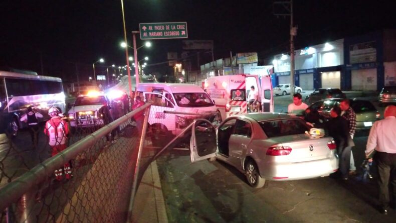 Una aparatosa carambola entre cuatro vehículos provocó una intensá movilización de elementos de la Policía Vial y paramédicos que atendieron a más de 10 personas, de 18 involucradas; entre los vehículos participante iba una camioneta llena de atletas de alto rendimiento que habían participado en un torneo en el Gimnasio Olímpico de Aguascalientes.