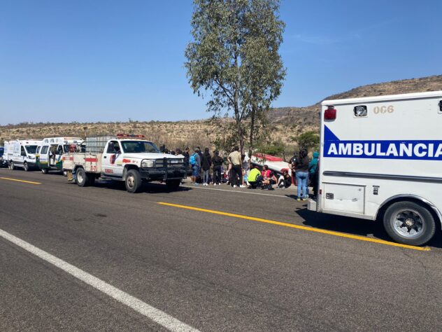 Al punto referido arribaron elementos de las Policías Estatal, Municipal de la zona, personal de la Guardia Nacional y paramédicos del ISSEA, quienes en el kilómetro 33+600 detectaron el accidente vial.