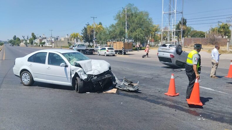 Por pasarse la luz en rojo sobre la carretera 45 Norte, a la altura del fraccionamiento Paso de Argenta, un conductor impactó a otro vehículo que daba vuelta a la izquierda ocasionando que terminara volcándose y que su tripulante resultara herido, por lo que tuvo que ser hospitalizado de emergencia.