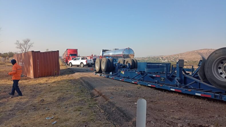 La situación generó la movilización de los elementos del H. Cuerpo de Bomberos del Estado, en conjunto con técnicos en primeros auxilios de la Benemérita Cruz Roja, quienes a su llegada detectaron tanto la pesada unidad de motor sobre su toldo, como su plataforma, que tenían las llantas apuntando al cielo.