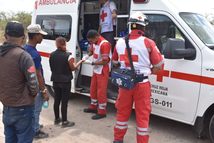 En el lugar se instaló un puesto de ayuda humanitaria, donde especialistas de la Cruz Roja ofrecieron hidratación, atención prehospitalaria a 10 personas entre ellas una femenina con 6 meses de embarazo, así como a dos menores quienes presentaban un cuadro leve de deshidratación, al resto de las personas les hicieron curaciones y revisión de presión arterial.