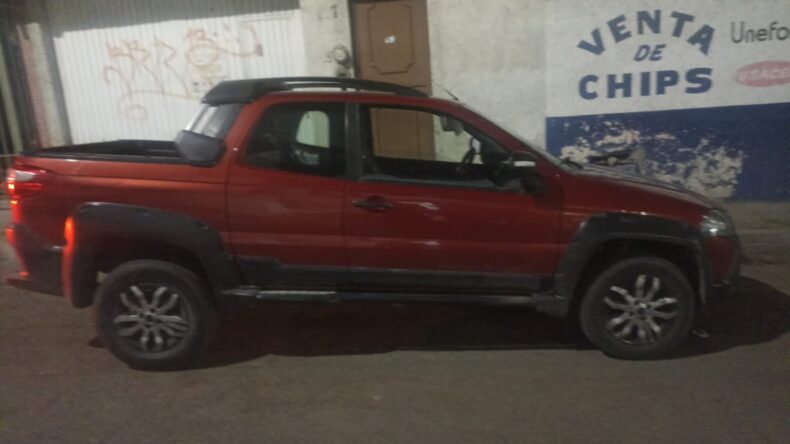 Los oficiales lograron detectar a los hampones, quienes se habían escapado en una camioneta RAM Adventure en color tinto sobre la avenida San Gabriel, donde le marcaron el alto al chofer, mismo que obedeció la orden.