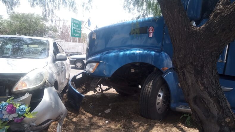 Ahí, detectaron un tráiler de la marca Kenworth, en color azul, en el que viajaba Saúl “N”, de 44 años de edad, mismo que refirió que la mujer que iba en el vehículo intentó rebasarlo, pero a pesar de que aplicó los frenos no evitó el fuerte impacto, por lo que el automotor Nissan Versa, en color gris, sufrió severos daños y su conductora de nombre Mónica, de 39 años, resultó herida, siendo así que los paramédicos la atendieron y la tuvieron que trasladar al Hospital General de Zona 1 del IMSS.
