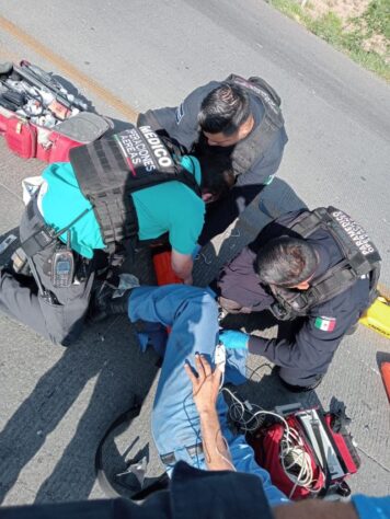 Luego de que testigos solicitaron ayuda a los servicios de emergencia, al lugar acudieron paramédicos del Grupo de Operaciones Aéreas del helicóptero Halcón 1 de la Secretaría de Seguridad Pública Municipal, que se encargaron de brindarle los primeros auxilios al motorista.