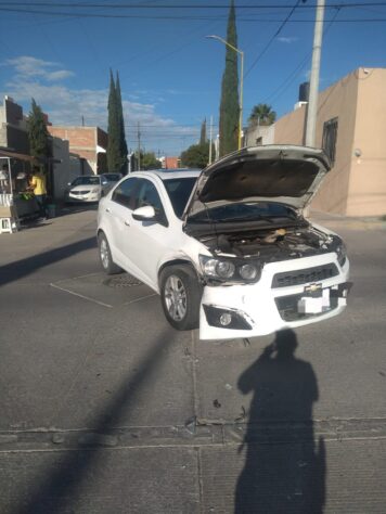 Por ignorar el aviso vial terminó estrellándose de frente contra un coche tipo sedán en color blanco, de la marca Chevrolet, que conducía Diego “N”, de 20 años, quien resultó ileso al igual que la fémina del Nissan.