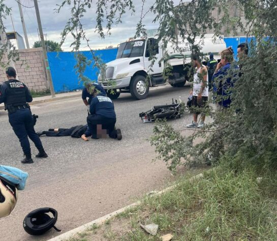 Un empleado de seguridad que se movilizaba en estado de ebriedad en una motocicleta, sufrió una aparatosa caída que le dejó una severa herida en la cabeza. Lo anterior, se generó cuando circulaba sobre la avenida San Gabriel, a la altura de los Yonkes de autos, en Norias de Ojocaliente.