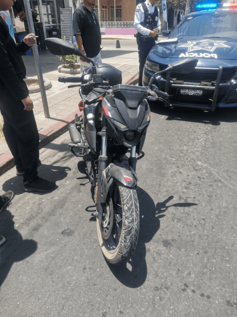 Un taxista se le atravesó al paso al conductor de una motocicleta, por lo que terminó provocando un choque desigual, requiriéndose la presencia de elementos de la Policía Vial de Aguascalientes.