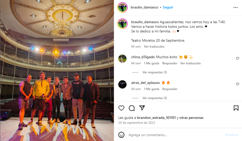 Hace poquito tocamos en Nochistlán, iba con el temor, con la expectativa de cómo nos va. Es la primera vez que vamos con esta cara profesional, y resulta que el presidente municipal fue a vernos. A llevarnos a toda su familia. Llevó a sus nietos a que nos conocieran.