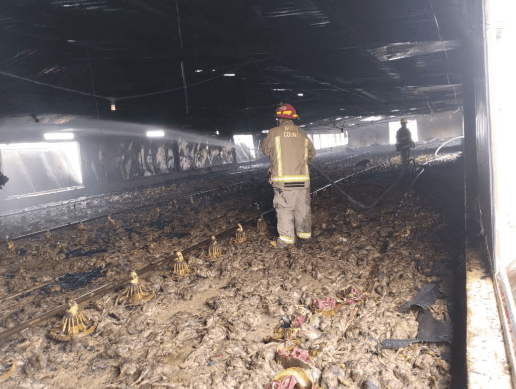 Tras un voraz incendio de una pollera al interior de un rancho en Pabellón de Arteaga, elementos de Coordinación Municipal de Protección Civil de ese municipio, en conjunto con Bomberos Municipales de la zona, sofocaron el fuego que consumió más de 30 mil pollitos.