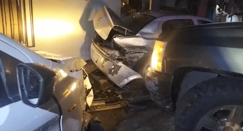 Por lo que en el cruce de las calles Santander y Lima, al ir a exceso de velocidad, el antes mencionado perdió nuevamente el control de la camioneta Pick-Up y se terminó estrellando contra dos vehículos, siendo estos un sedán marca Ford, en color blanco, que era conducido por César “N”, y un tercer vehículo tipo sedán marca Chevrolet, en color plata, conducido por Pedro “N”, los cuales resultaron ilesos.
