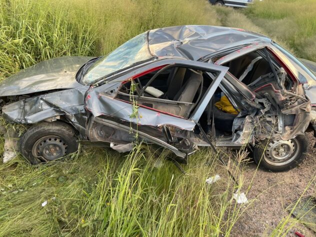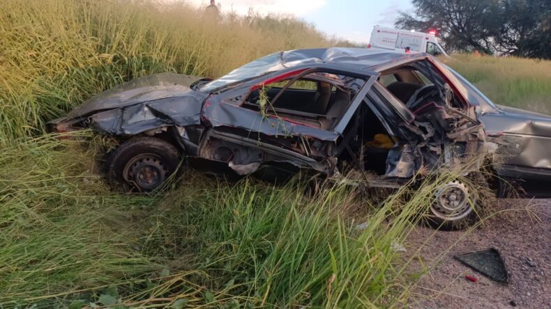 El coche abandonó la cinta asfáltica y cayó a un desnivel, donde se volcó aparatosamente y terminó sobre sus cuatro llantas.