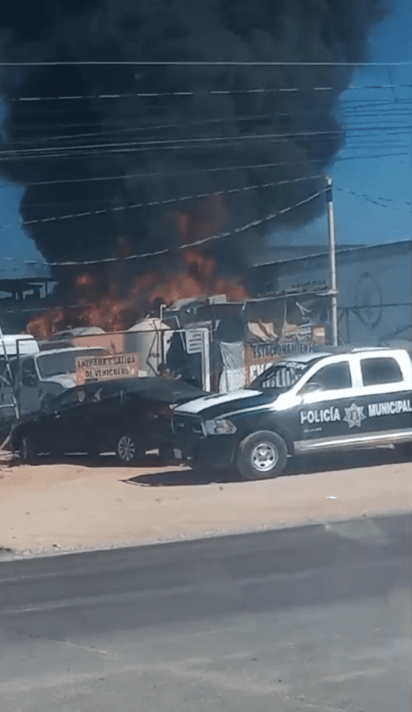 Se incendia un camión de pasajeros al interior de un taller mecánico, lo que generó la movilización de elementos de la Policía Municipal y de Vialidad quienes al ver el fuerte incendio dieron parte a los elementos de Bomberos Municipales, mismos que sofocaron el fuego y evitaron un mayor desastre.