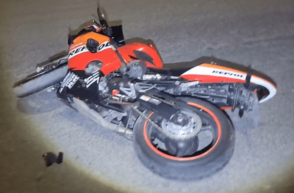 Una era una motocicleta de pista marca Honda Repsol color rojo con vivos naranjas y blanco, con permiso para circular sin placas, en la cual viajaba un joven de entre 25 a 30 años de edad.