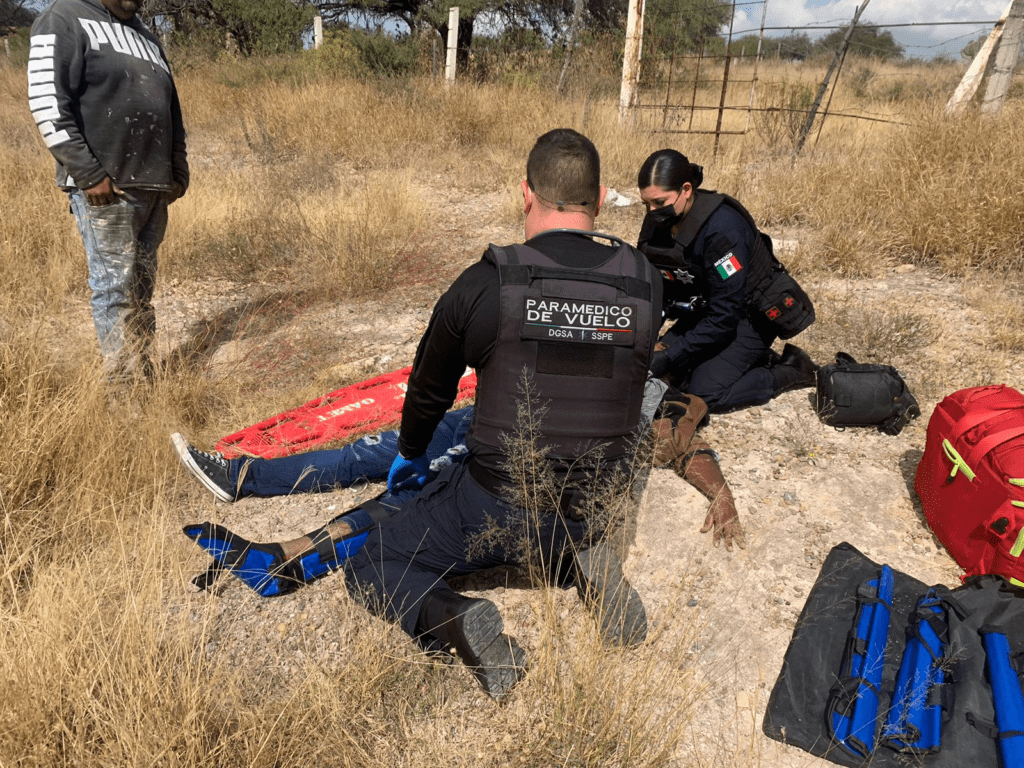 Lo que generó la activación de los elementos del Grupo Aeromédico Táctico (GAMET) quienes a su arribo al lugar atendieron a quien se identificó como Anthonie, de 26 años, el cual se encontraba desorientado y con golpes en diferentes partes del cuerpo, con probables fracturas en pierna izquierda, politraumatizado, con trauma toracoabdominal y medular.