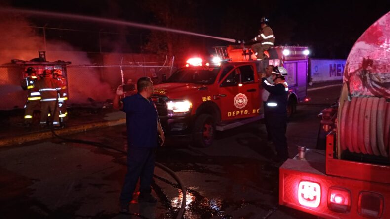 Durante la madrugada de este jueves se registró un incendio en un predio donde se almacenaban desechos industriales, camionetas en desuso y una bodega propiedad de la CFE, además de otros inmuebles y jacales. Afortunadamente, no se reportaron personas lesionadas.