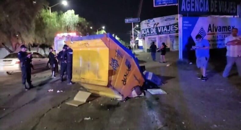 Una mujer resultó herida luego de ser atropellada por la conductora de un vehículo, quien tras el impacto continuó su camino y terminó por estrellarse contra un contenedor de basura. Debido a las lesiones, la víctima fue trasladada de emergencia a recibir atención médica.