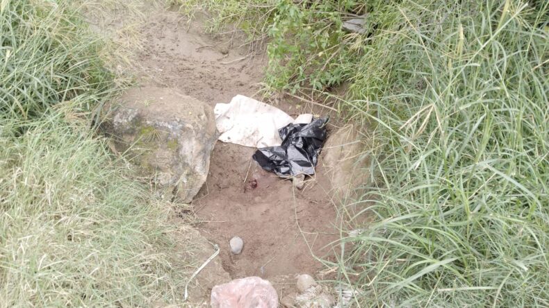 Estaban en una zanja de un banco de arena, dentro de una bolsa de plástico en color negro y cubierto con un lienzo de hule espuma.
