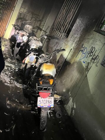 Detallaron que la mañana del domingo fueron detenidos varios sujetos, que recuperaron su libertad alrededor de la una de la madrugada del lunes y presuntamente acudieron al edificio para prenderles fuego a las motocicletas.