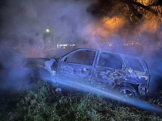 Sobre la calle Juan Pablo II de la colonia El Puente le prendieron fuego a una camioneta Ford Escape, modelo 2001.