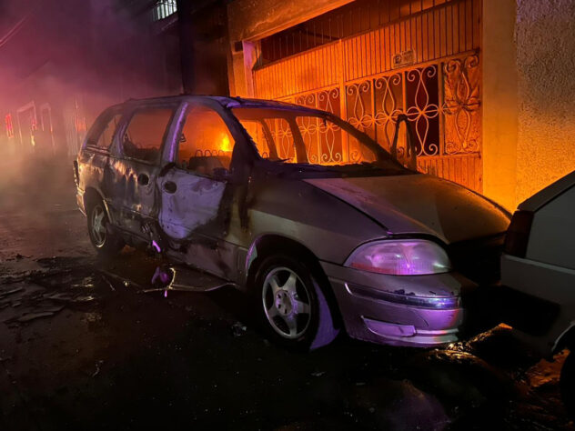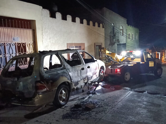 Enseguida, el personal se trasladó a la calle Aristeo Ruiz, donde fue incendiada una camioneta Ford Windstar, modelo 2000, en color beige y con placas de circulación extranjeras, BDZN132, que se calcinó en un 80 por ciento y la cual aparentemente tenía varios días abandonada en ese sitio.