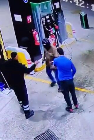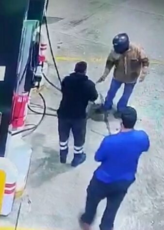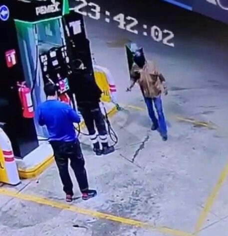 Uno de ellos, que vestía chamarra en color café, pantalón azul de mezclilla y calzaba zapatos en color negro, además de que llevaba puesto un casco de motociclista en color negro para evitar ser identificado, se acercó a la bomba caminando.