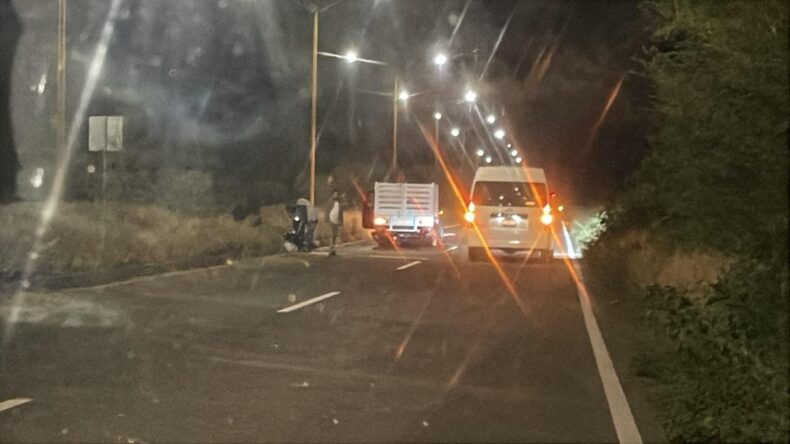 Durante su tránsito por la vialidad referida el vehículo de dos ruedas derrapó y provocó la caída de sus dos tripulantes, al parecer por el exceso de velocidad.