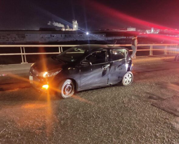 Al subir al puente elevado, metros antes del cruce con la otra avenida, impactó por alcance un coche Chevrolet Spark, en color negro, que era operado por Iván, de 28 años de edad.