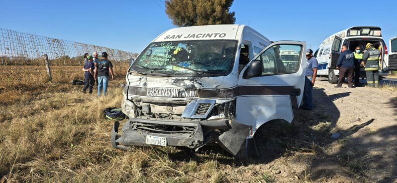 A la altura de San Jacinto observaron el bache a mitad de la cinta asfáltica, por lo que el conductor dio un volantazo para esquivarlo, pero invadió el carril contrario y chocó fuertemente contra la combi, que iba de norte a sur.