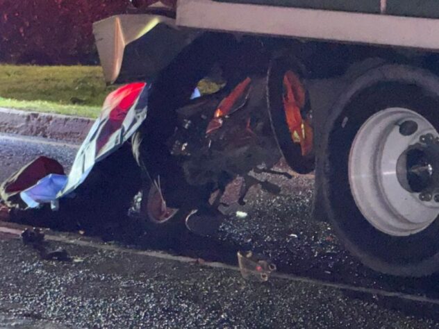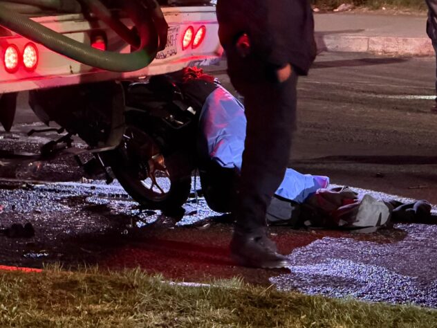 Por la magnitud del impacto el motorista quedó prensado y la unidad de dos ruedas incrustada en el camión cisterna.
