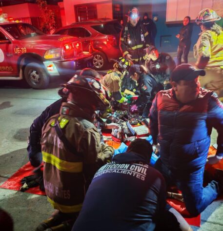 Vecinos del lugar despertaron al escuchar gritos de auxilio y al salir a la calle vieron en llamas el inmueble, cuya planta baja estaba acondicionada como restaurante “Mariscos Hugos Aguascalientes” y la alta como casa habitación.