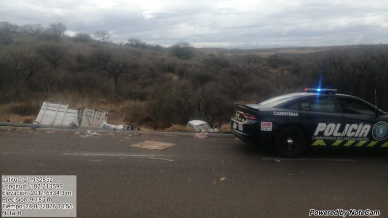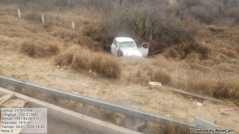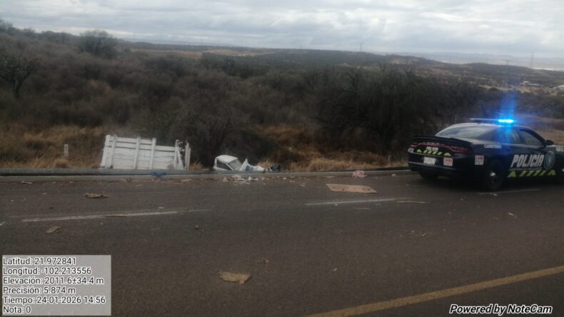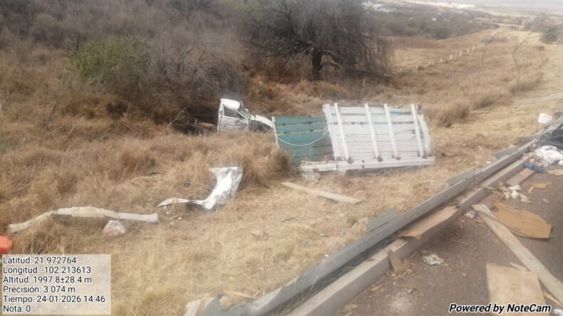 La víctima, Antonio “N”, de 63 años de edad, se accidentó alrededor de las tres de la tarde al volante de una Nissan tipo estacas, en color blanco y con placas de circulación de Aguascalientes.