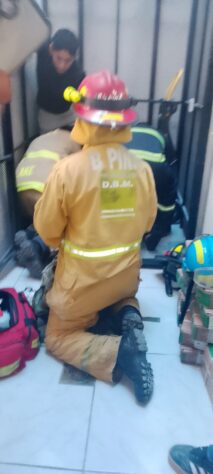 Elementos del Departamento de Bomberos Municipales se movilizaron al local comercial tras recibir reportes sobre unas personas prensadas tras caer un elevador y al llegar encontraron a dos víctimas con lesiones.