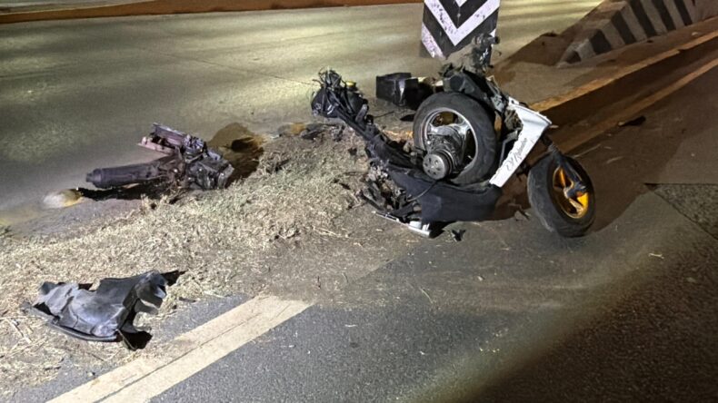 La motocicleta fue destrozada por el VW Bora y se arrastró varios metros.